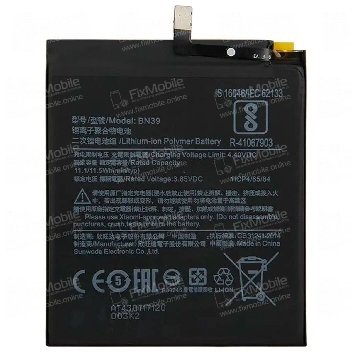 Аккумуляторная батарея VIXION для Xiaomi Mi Play BN39